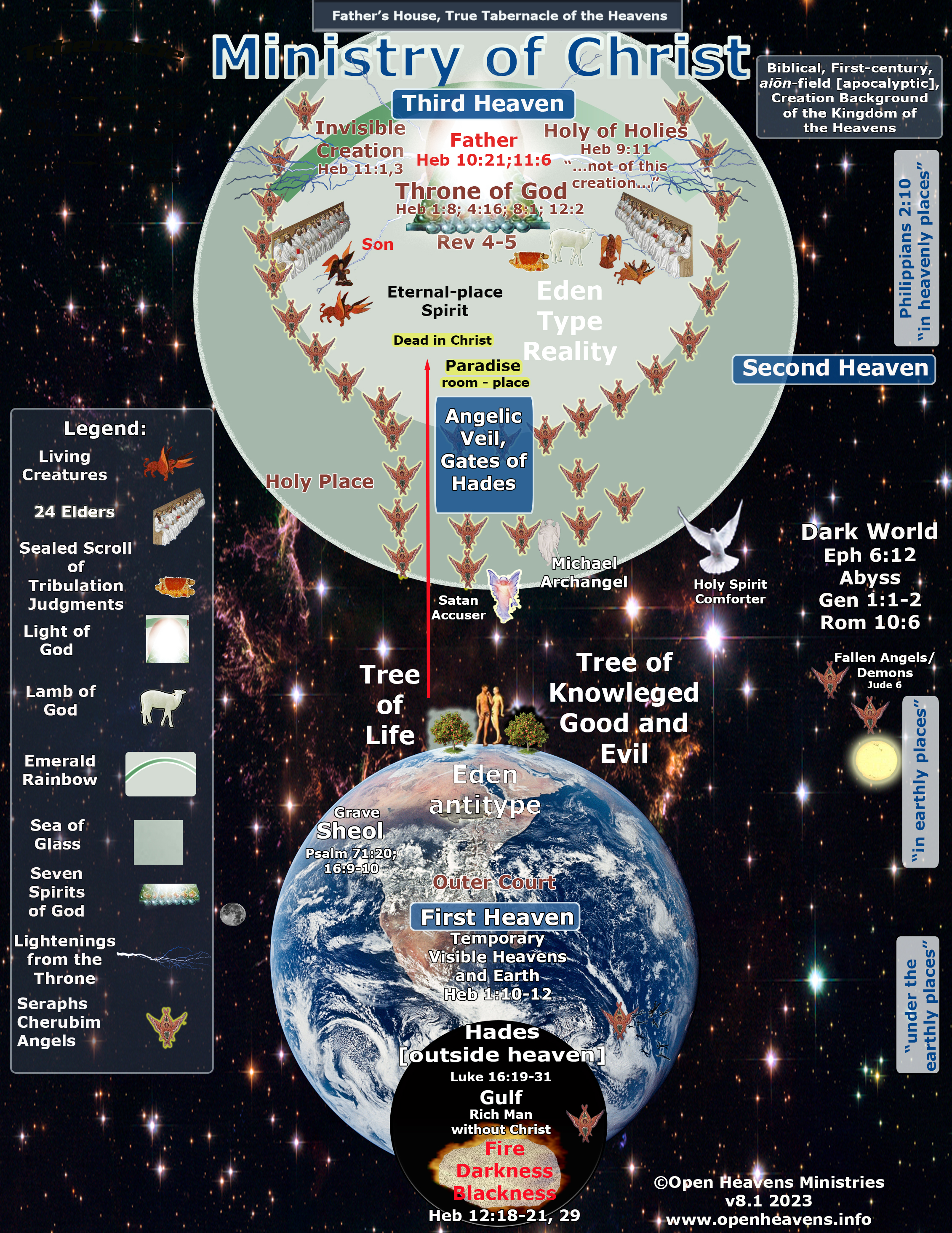 The Biblical Creation Mapping website content presents information for consideration concerning the proper creation background of the kosmos of Genesis in the tabernacle of the heavens that controls the foundation for biblical conversation about the ministry of Christ in atonement and his present intercession for his people at death and judgment (Heb 9:27-28). The information is free and always open for congenial discussion, clarification, and your insights in conversation opportunities available. A Thesis, Dissertation, and 2024 book publication, with interaction to scholarly conversation are available to evaluate the evidence for plural heavens in a highly probable first-century tabernacle/temple background. |