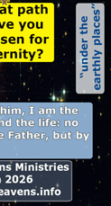 Since the beginning of messianic promise to people, God's speech-action revelation about his purpose to bring people to himself into heaven endures many philosophical detours and delays toward earthly kingdom concepts (cf. Gen 4:7 [see Henry, Atonement and Logic 80 n144]; Matt 11:25; Mark 8:33; Luke 19:11; 24:21; John 3:10; 12:34; Acts 13:10; Rom 1:18-23; Jas 2:5). Since the beginning of people, at times this debate fiercely intensifies, as first exampled by Cain and Abel in the symbolism of their sacrifices, between those symbolically in worship hoping for an earthly or heavenly kingdom. Jesus remarked that these differences in messianic destiny formed the basis for the chaos between ideological views (Matt 24:4-14; 1 Cor 4:6; cf. Heb 11:32-38; James 4:1-10; 2 Tim 3:12). Notice how Jesus asserts that among the "many," "they," who claim Jesus is the Christ, those who were with him, "you," were the ones being persecuted by the "many," "they," of people groups having earthly authority in power to put others to death or tribulation and not the "you" of people holding Jesus as Christ doing the persecution (Matt 20:24-28; Matt 23:1-12). The Apostle John was amazed at this culture when provided a vision of their judgment (Rev 17:6-7). Now nearly two thousand years later, historians realize the earthly Christian history of past people and events most often determines by the self-proclaimed victors over supposed enemies (John 16:2). Hence, due to a long practice of marginalization and erasure by Christians, so-called, with claims of God's power and authority in earthly kingdoms and philosophical traditions, little evidence remains about those following Jesus, as the Christ, who shepherds his people into heaven. What is known about those by faith holding to spiritual transformation at death and judgment comes from the polemicized exaggerated records of heresies, so-called, often written hundreds of years later. Since Antioch Syria in the first century CE, the people groups, claiming the new first-century "Christian" moniker, frequently oscillate between followers hoping for life journey completion as either earthly fleshly resuscitation or heavenly spiritual transformation destinies. This site writings herein, hears in God's speech-action/revelation to his people, a heavenly calling by Jesus, as Christ, to shepherd those who believe in him at death and judgment into heaven, a normative opinion held by Christians and forcibly suppressed by religious authorities since the latter half of the first century (See Henry, Atonement and Logic of Resurrection in Hebrews 9:27-28, 144-50). This hearing cuts across much of modern orthodox Christianity since the fourth century CE, which in holding to traditions more than the first-century text of Scripture (copies of Greek manuscripts controlled by leaders), mainly hears only promised ethical and legal changes of status for people on a mysterious religious path to a renewed, fleshly, earthly kingdom. In philosophical and theological gap-filling beyond the speech of God, many since the fifth century CE, to shore up obvious tradition incoherence with the text of Scripture (in the fifth century CE, more believers beyond leaders could now read the new Latin translation of 405 CE by Jerome), have since embraced ideology that deceased believers are in some quasi-intermediate-state, considered either as a mystery of "in Christ," or now inferior beings awaiting "asleep" or wandering the earth, until a final perfection in return to their fleshly bodies during a second coming of Jesus at the end of the age. Neither position maps sensibly in Scripture. However, the general believer usually believes that they will see Jesus at death to shepherd them into heaven (Psalm 23; 2 Cor 4-5; Phil 1:21-23; 3:17-21), which does have a strong hearing, at least until listening more to the common religious, earthly-kingdom orthodoxy more than God himself about faith in his presently available, unseen kingdom (cf. John 9:39-41). The Required Necessity for Conversational Witness